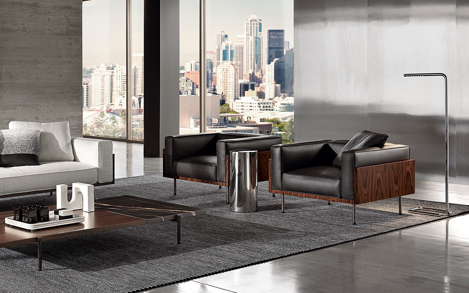 Brasilia, designed by Marcio Kogan / studio mk27, has an ultra-precise, contemporary, minimal style, rooted in Brazilian modernism. Minotti has successfully incorporated Kogan’s stylistic trademarks into the 2021 Collection, blending their charm with that of the overall design concept. A family of furniture with a highly innovative profile that reinterprets shapes from the past, transforming their apparent simplicity into a form of real beauty that conceals an intricately complex design concept: by juxtaposing different materials with strong powers of expression, it offers a new take on the distinctive style that identifies the Minotti brand. A design that looks to the future, made to stand the test of time and become a new classic. The family hosts a range of seats for different environments, from the living to the night area, including sofas, elements with one armrest, an armchair and ottoman, and a varied selection for the bedroom. It is characterized by a Mid-Century aesthetic revisited and modernized not only in its lines and volumes, but also in its use of materials, in particular, Dark Brown stained rosewood, and in its elegant structural details. In this proposal, the distinctive characteristics of the Minotti brand are clearly visible: it does not focus so much on the design in terms of its shape, but rather on the project’s cultural elements, offering a new take on classic lines, volumes and proportions, and showcasing original new uses of materials. The seats, conceived for the home environment, can also play an original role in hospitality settings, given the wide variety of elements, coverings, and configurations to choose from.