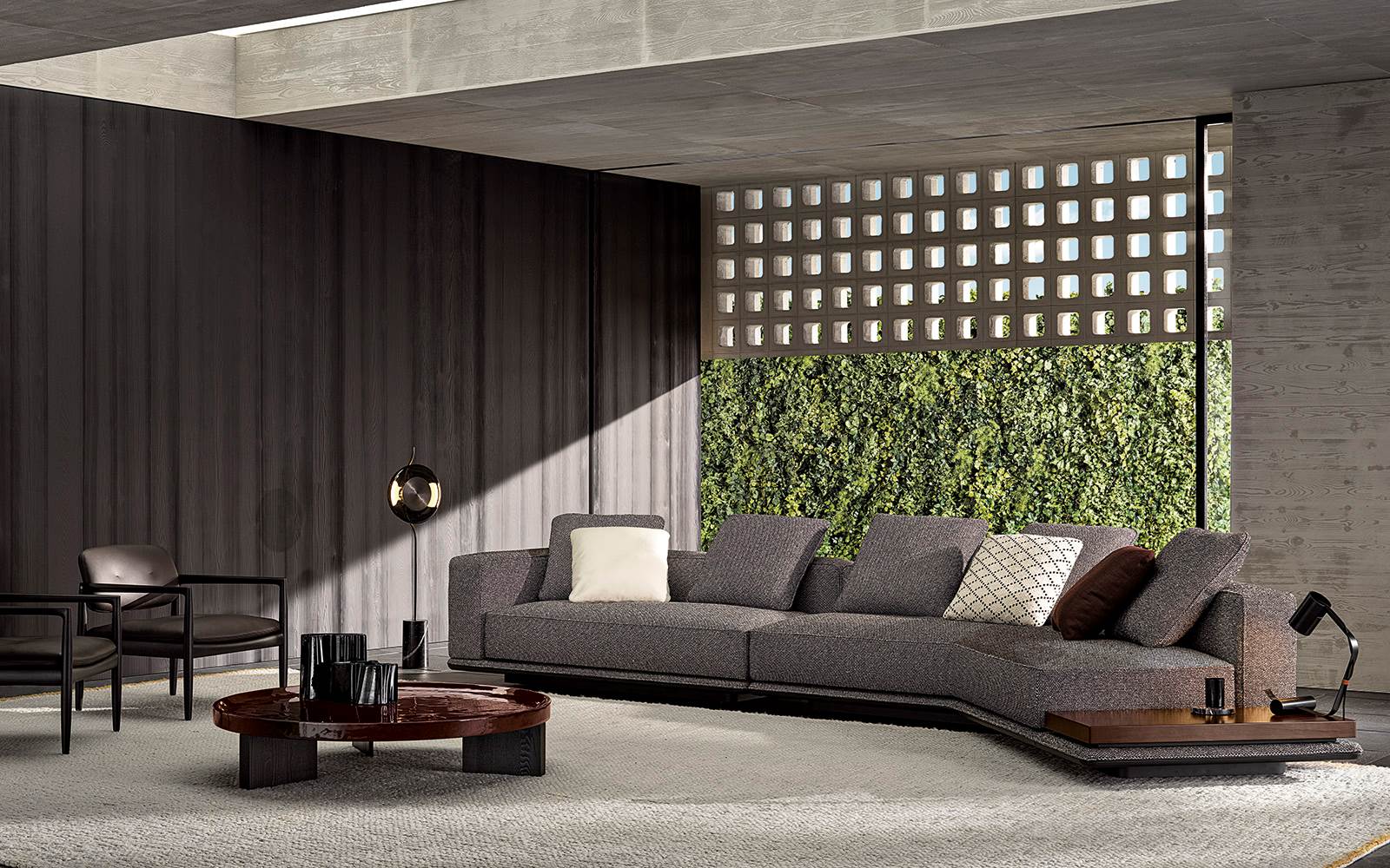 The seemingly simple appearance of Horizonte gives rise to a sophisticated style code that can be used in a wide range of configurations. By combining modules, sloping elements, and others with built-in coffee tables, an overall narrative that could continue forever without interruption is created.