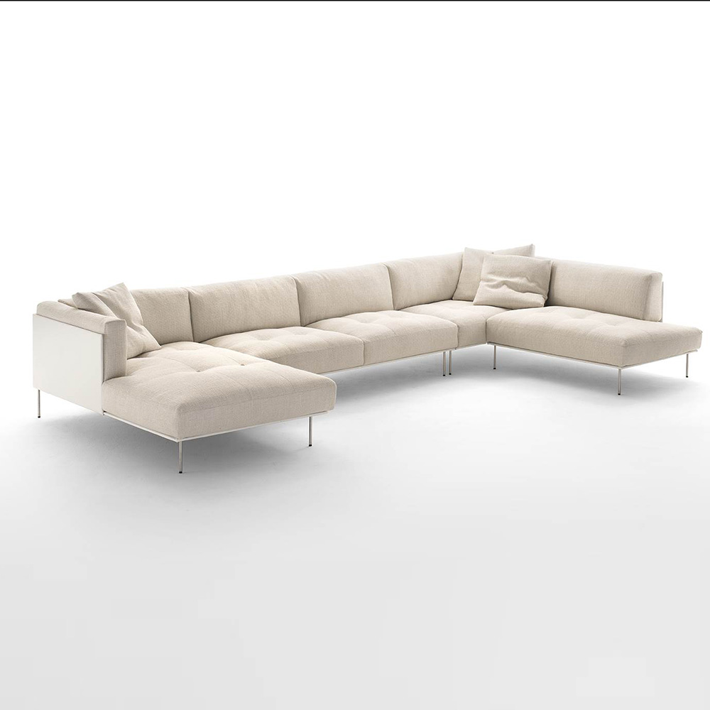 Rod, characterized by slender back and light, airy shell, lined with inviting cushions enhanced with quilted details and buttons at sights, is now available in the modular version to build new spatial solutions and original compositions.