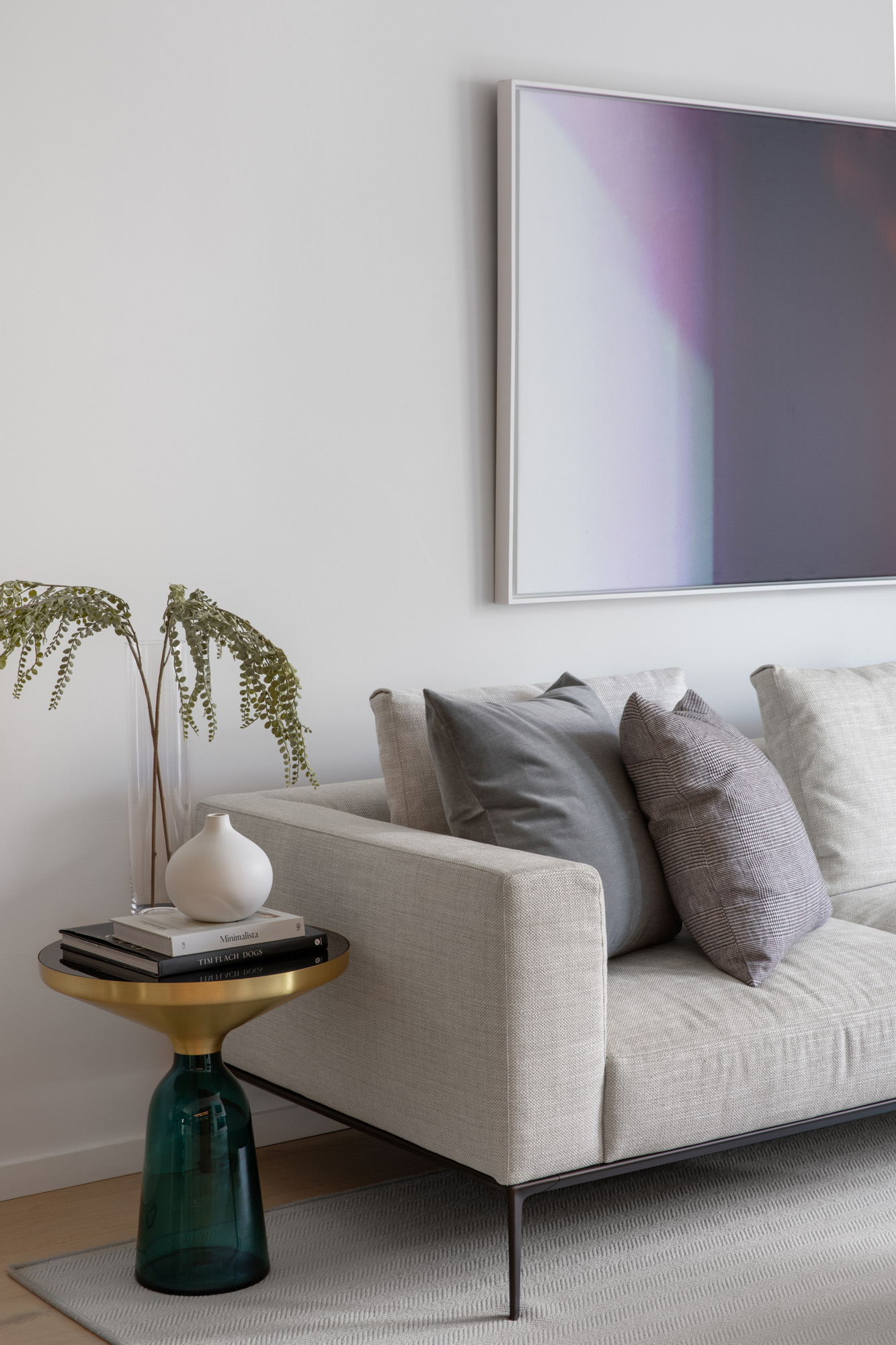 Furnishings: Minima’s Freeman sectional (Minotti), Fil Noir armchairs (Minotti), Jaan Living sofa (Walter K) and 28 Chandelier (Bocci)